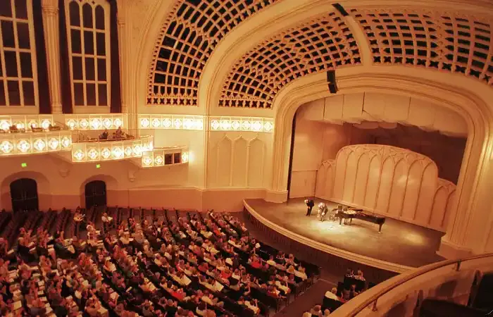 Patrons with mobility disabilites should arrive via the center-west entrance to the Imig Music building. Wheelchair accessible parking spaces are available at the northeast corner of the Euclid Avenue Autopark as well as the northeast corner of above-ground Lot 204. Both lots are located across 18th Street, west of the Imig Music building.